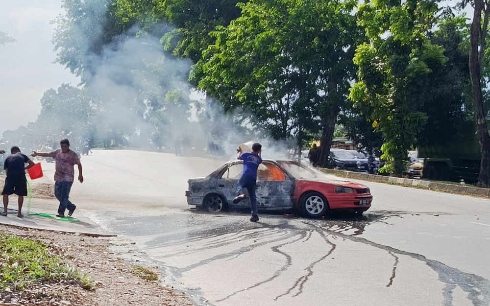 Namun demikian, meski api masih berkobar, petugas bersama warga yang berada di lokasi segera bertindak cepat untuk mencegah kebakaran semakin meluas. Dengan mendorong mobil yang terbakar keluar dari area SPBU.