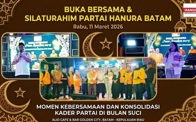 RealBatam.com,Batam-Dewan Pimpinan Cabang (DPC) Partai Hati Nurani Rakyat (Hanura) Kota Batam menggelar kegiatan silaturahmi pengurus baru sekaligus buka puasa bersama pada Rabu (11/3/2026) di Aliio Cafe & Bar, Golden City Bengkong, Batam. Kegiatan yang dimulai pukul 17.00 WIB tersebut berlangsung dalam suasana hangat dan penuh kebersamaan di bulan suci Ramadan.