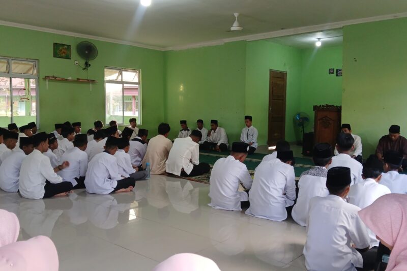 Kegiatan khatam Al-Qur’an dilaksanakan pada Jumat (13/3/2026) di lingkungan madrasah dan dipandu oleh Koordinator Al-Qur’an MTs Aqidatunnajin, Johan.