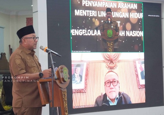 RealBatam.com,Tanjungpinang-Wali Kota Tanjungpinang H Lis Darmansyah SH mengikuti penyampaian dan pengarahan Menteri Lingkungan Hidup terkait program Pengelolaan Sampah Nasional, secara daring dari Aula Sultan Sulaiman Badrul Alamsyah, Kantor Wali Kota Tanjungpinang, Selasa (7/4/2026). Dalam kesempatan tersebut, Wako Tanjungpinang menyatakan, Pemko Tanjungpinang berkomitmen mendukung program pengelolaan sampah nasional tersebut.