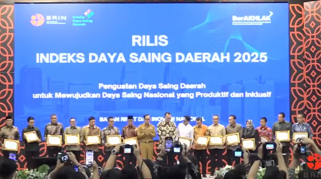 Apresiasi tersebut diserahkan dalam acara peluncuran Indeks Daya Saing Daerah (IDSD) 2025 yang digelar di Jakarta, Selasa (24/2/2026). IDSD sendiri merupakan instrumen strategis untuk mengukur performa dan kesiapan daerah dalam menghadapi kompetisi global melalui penguatan riset, inovasi, kewirausahaan, dan kualitas sumber daya manusia.