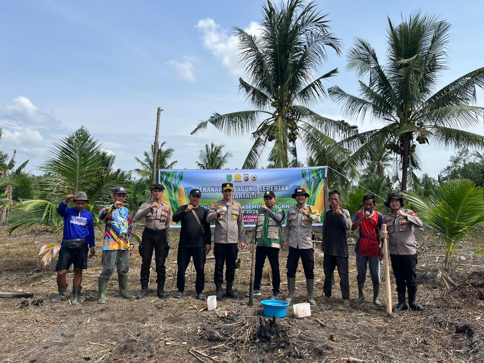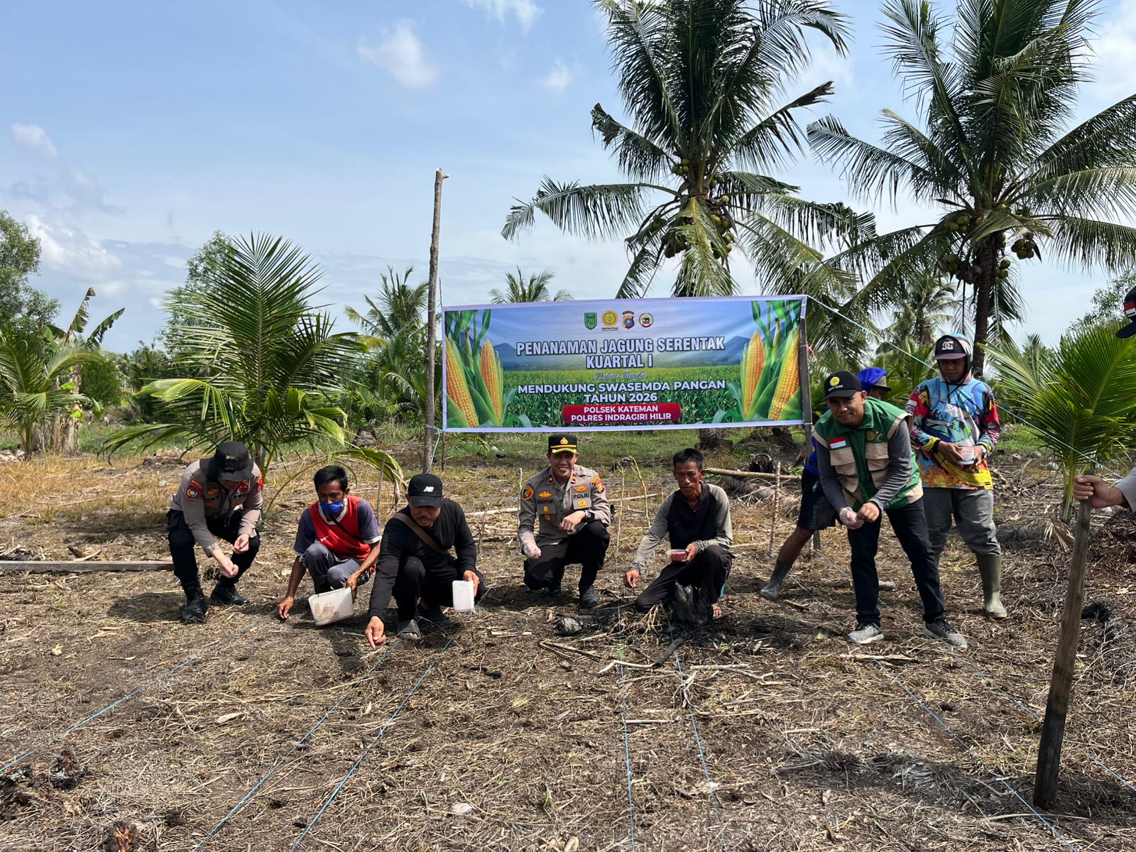 Kegiatan yang berlangsung sejak pukul 08.30 WIB tersebut melibatkan unsur kepolisian, penyuluh pertanian, kelompok tani, serta masyarakat setempat. Penanaman jagung dilakukan di lahan seluas sekitar 1,5 hektare milik Kelompok Tani Usaha Tani yang dikelola oleh H. Abdul Aris.