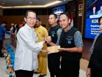 RealBatam.com,Batam-Wali Kota Batam, Amsakar Achmad, menyerahkan santunan kepada janda Pegawai Negeri Sipil (PNS), anak yatim dari keluarga PNS, aparatur sipil negara (ASN)
